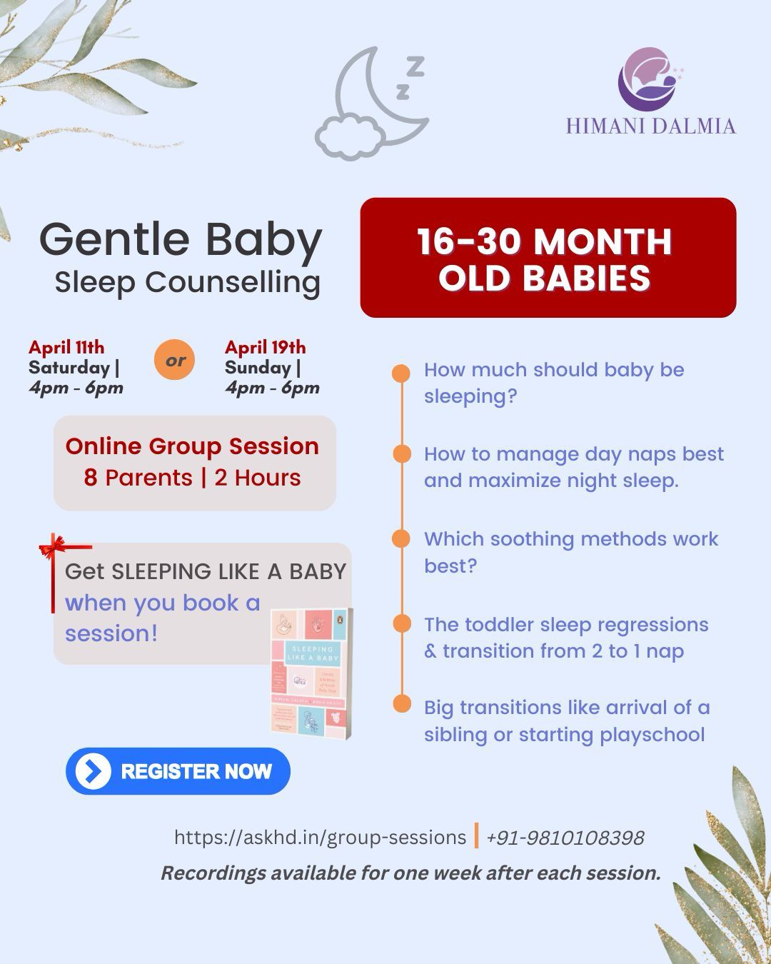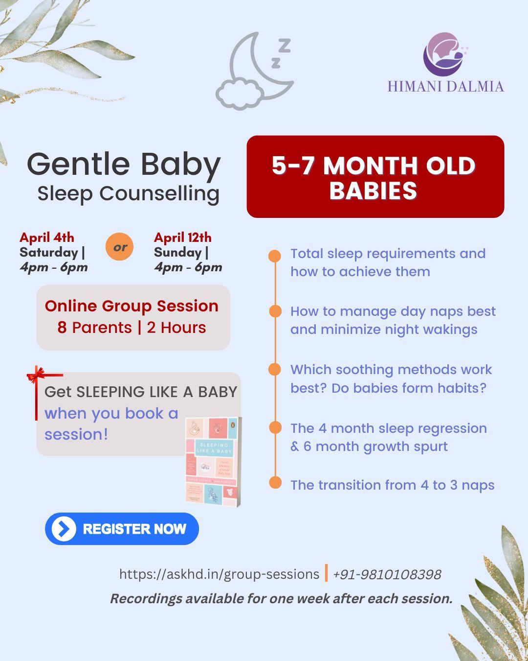 Twice in the year, I hold group sessions on baby sleep. They are coming up soon in October! 😃